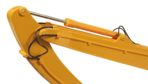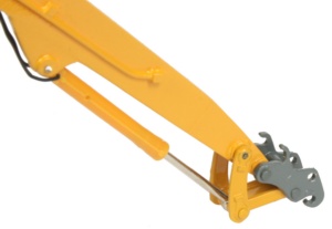 Holes need drilling in the resin boom and stick. The quick coupler and bucket linkage require 1.5mm holes whereas the holes for the bucket and stick hydraulics and the hole where the stick connects to the boom can all be drilled at 1mm.