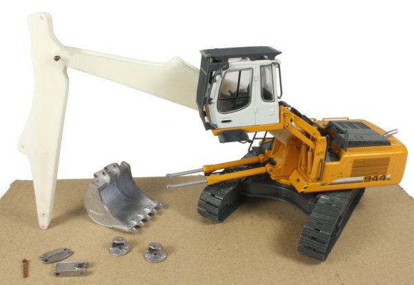 There have been a number of after market boom kits over the years from companies and individuals like the Model Excavator Company and Miniature Demolition Company to name a few. The last couple of years have been quiet on this front until recently, with the launch of a new range of boom kits from Gaz Evans. The Liebherr R944C long reach kit is a recent addition and comes complete with all the parts needed to convert either the R954C from Conrad or the R944C from Universal Hobbies. I have chosen to update the R944C