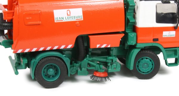 Despite the small dimensions, the 1:50th scale die-cast model from Conrad really packs a punch with some very nicely engineered solutions for the delicate sweeper arm mechanisms. The model has been decorated in the green and orange colours of Jean Lefebvre, part of the VINCI Group.