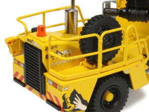 Both axles are fitted with dual wheels and have drive shafts fitted front and back with simplistic wheel hubs and replicated suspension strut detailing. The tyres have a treaded pattern which looks authentic with yellow finished wheel centres and bolt detailing apparent on the hubs.