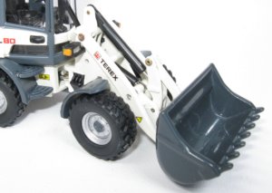 This is the new Terex TL80 wheeled loader from Bymo. The model is 1:50th scale and is finely detailed with a fully reproduced and accurate cab interior with full boom/bucket movement. The loader arms have an integrated qiuck coupler which allows the bucket to be removed, although no other work tools are provided in the box.