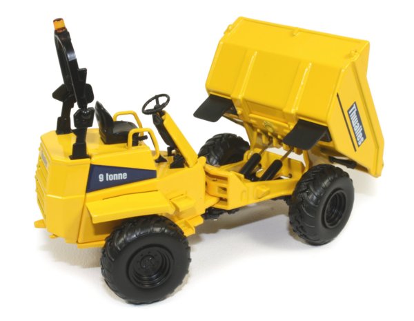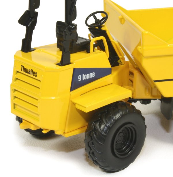 Presented here is the 1:50th scale Thwaites 9 tonne site dumper from Corgi. The full sized machine is available in both swivel and front tip designs with a choice of Powershuttle or Powershift transmissions. Powered by the Perkins 1100 D-series turbo charged four cylinder diesel engine generating 94 bhp at 2200rpm, the dumper is both powerful and agile with kinglink articulating chassis offering excellent levels of stability and traction for the toughest of site conditions.