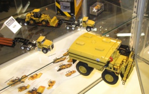 Universal Hobbies have been quiet of late when it comes to construction models, but they did have a new Komatsu D155AX bulldozer on display and suggested they would have additional models for release at Intermat in April. While unconfirmed, it looks likely that a wheeled excavator will be one release and it will be interesting to see if there are any new Case and New Holland models from Universal Hobbies this year. Ros are becoming known for their new range of highly detailed agricultural models but for construction fans, they have released the Sennebogen 690HD tracked crawler crane with diaphram foundation grab in 1:50th scale and are working on further new models for Sennebogen which are likely to be unveiled at Bauma. The range of Ammann models will also increase at Bauma with additional models currently in work. Motorart have announced four new construction models, consisting of the A40F articulated hauler, the L90G wheel loader, the DD25 tandem drum roller and the EC220D tracked excavator. Unfortunately, there are no images, even of the real machines which are due to be launched at Intermat. The models will follow around September 2012 while a further two new Volvo models may appear at the end of the year. From JCB, the news is that two models are in development with Motorart with an expected release for Bauma 2013. The range of 1:87th scale construction models from Schucco have increased with the latest, the Liebherr TA230 highlighted at the fair. This joins the A900C wheeled excavator, the L550 wheel loader and the PR744 bulldozer which have been produced in the last year or so. There are also a couple of HAMM roller models available. Fans of the Australian style heavy haulage trucks and trailers will be in for a treat over the next few years with Drake Trailers actively developing their model program. The next model in the series will be unveiled later this year and they have some interesting ideas and concepts which will be great to see realised in the not too distant future. I managed to sit down with Chuck Sword and asked him about his model program. While there is nothing specific to mention at the moment, he is actively working on a number of projects which are likely to appear sometime next year. I also had the oportunity to speak with Nicholas from TWH Collectibles and while I cannot divulge any of the conversations, all I can say is that there are some interesting plans in place. Watch this space. For collectors in the UK, I will be attending the new International Model Tractor, Plant and Construction Machinery show at the Warwichshire exhibition centre on the 19th February along with the Spalding Truck & Construction show on the 20th March where samples of a number of the new models from the toy fair will be on display.