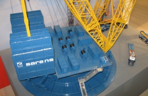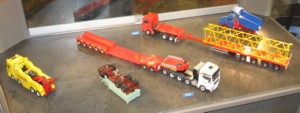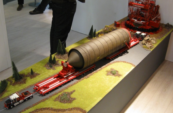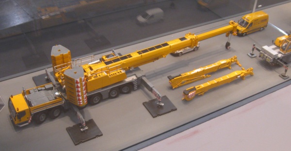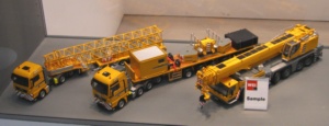 The coke drum move set was on display alongside the PTC and the model is much more impressive in the flesh than the pictures show, and the levels of detail are exceptional. If only I had the room to display one.... One model which has been rumoured for a while is the Liebherr LTM1350-6.1 and the prototype samples on display are exceptional. Every conceivable functional detail appears to have been modelled, allowing the crane to be set up in a number of different configurations including transport mode, shown alongside a new set of support trucks which will be available shortly. The crane is expected to be available from the Liebherr online shop over the summer.