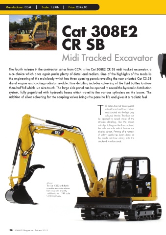 The fourth release in the contractor series from CCM is the Cat 308E2 CR SB midi tracked excavator, a