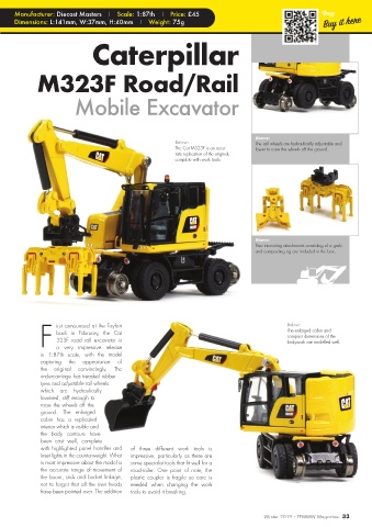 The Cat M323F is an accu- lower to raise the wheels off the ground.