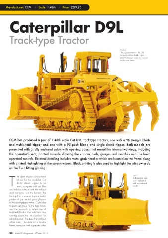 CCM has produced a pair of 1:48th scale Cat D9L track-type tractors, one with a 9S straight blade
