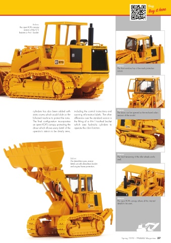 an open ROPS canopy protecting the which uses hydraulic cylinders to