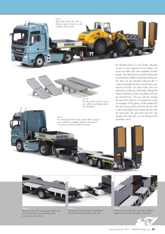 The bed of the trailer incorporates wheel wells The bed can be telescopically extended to At the rear of the bed, there are metal rods that