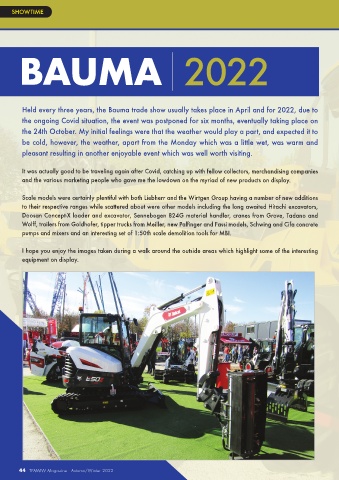 Held every three years, the Bauma trade show usually takes place in April and for 2022, due to