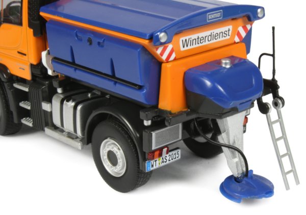 Schmidt is a company that specialise in snow clearance equipment with a varied product range covering all snow clearance eventualities, from truck mounted plows and spreaders to snow blowers and sweeper brooms. NZG has modelled the Tarron plow and Stratus spreader in 1:50th scale as the perfect accessories for the Unimog 430 carrier.
