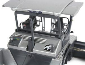 The cab area features a nifty feature whereby the entire roof canopy can be folded down into the transport position and this is fully functional on the model. Even the exhaust stack folds down and the canopy roof has sliding extension panels which extend over the side of the paver to protect the driver when the seats are in the extended position.