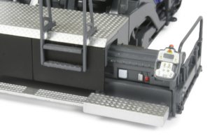 The seats located on the operator's platform have a pivoting motion allowing them to extend beyond the width of the chassis which gives a better view of the area and there are accurately scaled metal handrails all round the model.