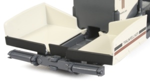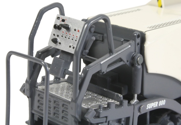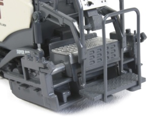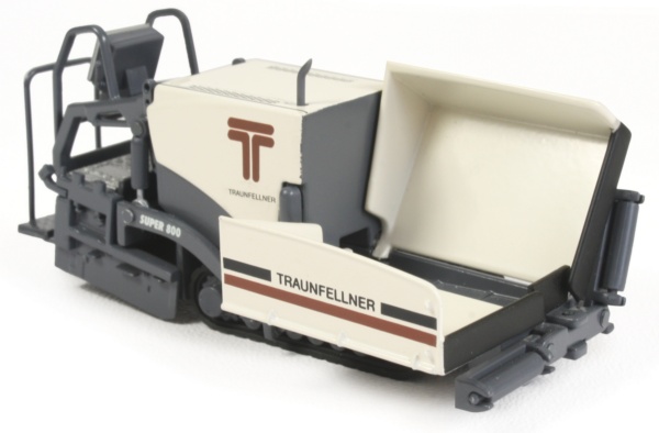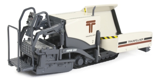 Presented here is the limited edition Vogele Super 800 tracked paver in 1:50th scale from NZG, decorated in the Traunfellner company colours. The model features a working hopper with each side lifting to the vertical position, along with the wheel guides, complete with rotating rollers. The paver is very narrow and is mainly used for pavement surfacing or in areas with limited access.