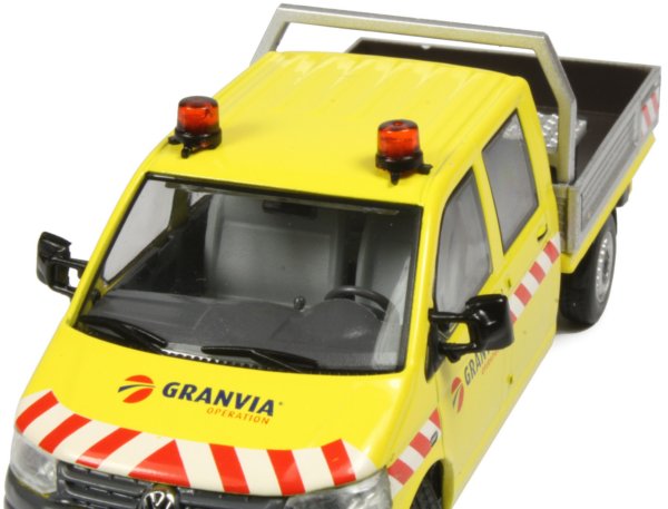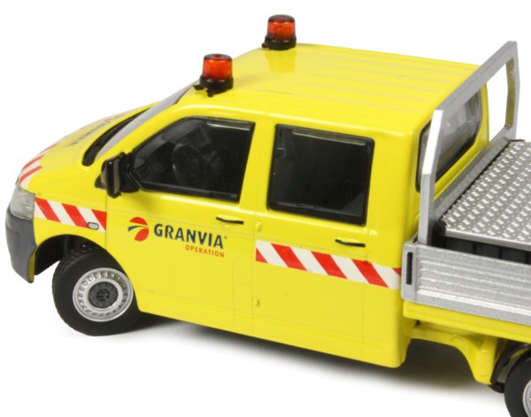 Presented here is the exclusive edition 1:50th scale Volkswagen T5 DoKu Transporter from NZG which has been finished in the yellow decoration of Granvia.