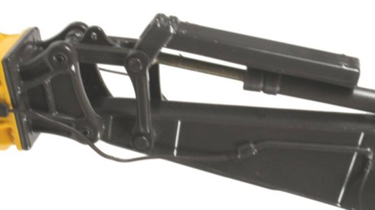 Presented here is the 1:50th scale Volvo EC460C LD demolition spec tracked excavator from NZG. This is an interesting variant on the previously released standard EC460C tracked excavator and at first glance, the only difference appears to be the crusher attachment and guarded cab. On further examination, there are a number of small differences including the extended upper structure frame to protect the body panels (Shown on the picture below), the small access platform below the cab and the protective covers on the main lift and bucket tilt hydraulics.