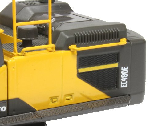 The overall paint finish is of a high quality with good crisp printing of the Volvo markings and safety labels. This is a good addition to the Volvo excavator model fleet and fits between the previously released EC300E and EC700 models.