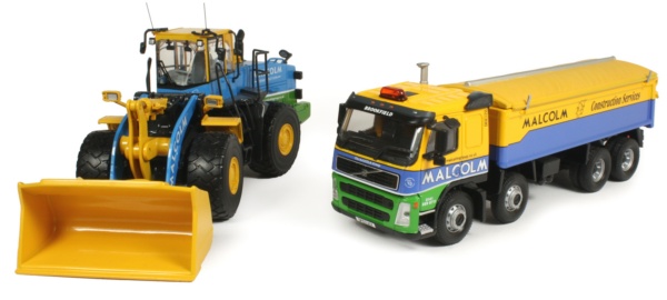 This is a good model in the Malcolm Construction Services range and is displayed below alongside the Komatsu WA500 giving an impression of scale against the large wheel loader.