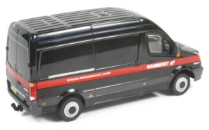 The Volkswagen Crafter is the largest of the three models in the set and has an accurately modelled front grill with prominent VW badge and contoured bumper. The rear view mirrors have integrated indicator lamps and small amber lamps are visible along the sides of the van.