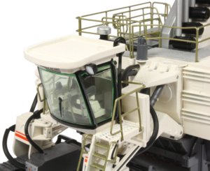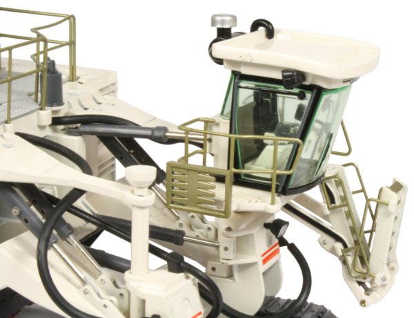 Cutting height is controlled by the four large arms, each holding a pivoting track frame with independent hydraulic steering and height control with each track frame having individually linked track pads that have good surface detailing. Due to the impressive weight of the model, several holes are visible in the lift hydraulics allowing pins to be inserted to keep the cutter in the raised position.