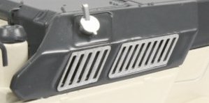 The tyres have a deep tread pattern moulded into the surfaces with the hydraulic drive housing covers highlighting the fixing bolts very well. The all-wheel steering has been accurately modelled with hydraulic steering rams offering a reasonable degree of movement of the front and rear wheels which have hydraulic hoses fitted to the drive housings on each wheel.