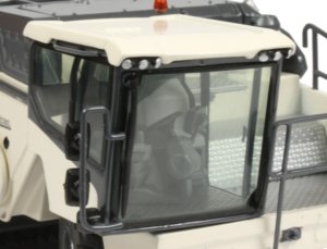 The mixing chamber is fitted to the underside of the chassis with a functional pivoting rotor plate on the front and a pivoting scraper at the rear allowing the different cutting and mixing operating modes to be demonstrated. Steps have been added to the frame leading up to the upper deck, complete with metal grab rails and amber warning beacons have been added for extra realism.